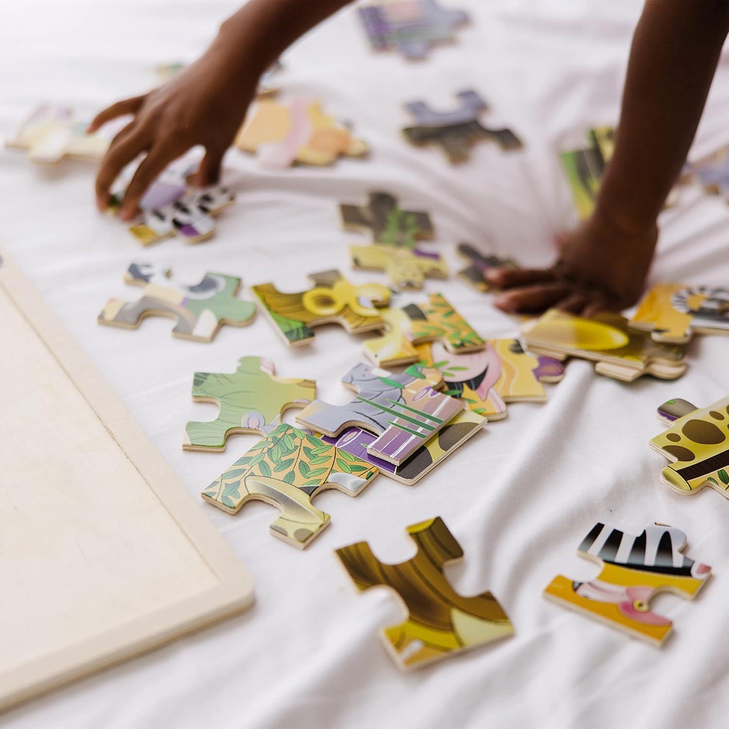 This set of three 24-piece wooden jigsaw puzzles features Dinosaur, Ocean, and Safari themes. Discover the wonders of nature by assembling these fascinating scenes. These colorful kids' puzzles come packaged in a sturdy wooden tray, providing a stable play surface and easy storage. Pediatricians say play with classics like puzzles can support early math skills. This toy makes a great gift for 3-year-olds, 4-year-olds, 5-year-olds, and up. It's a perfect gift for birthdaysand special occasions. Add a Melissa & Doug Wild Animals Jigsaw Puzzles in a box to round out the play experience and give kids another engaging option for screen-free fun. For more than 30 years, Melissa & Doug has created beautifully-designed imagination- and creativity-sparking products that NBC News called “the gold standard in early childhood play.” We design every toy to the highest-quality standards, and to nurture minds and hearts. If your child is not inspired, give us a call and we'll make it right. Our phone number is on every product!