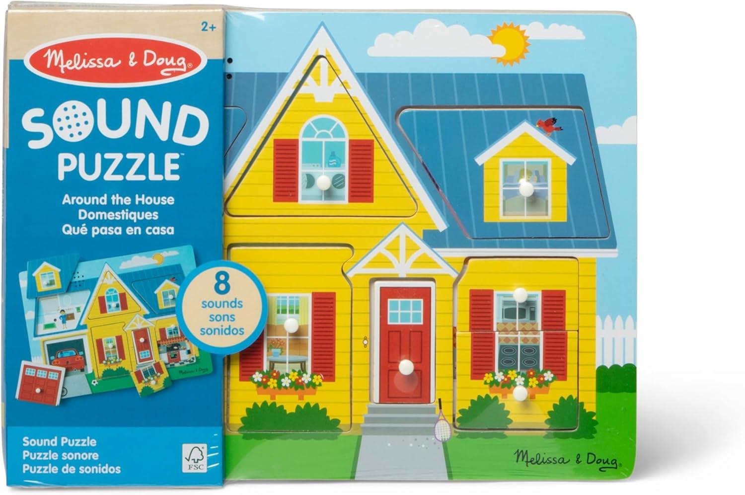 Melissa & Doug Around The House Sound Puzzle - Wooden Peg Puzzle (8 pcs)