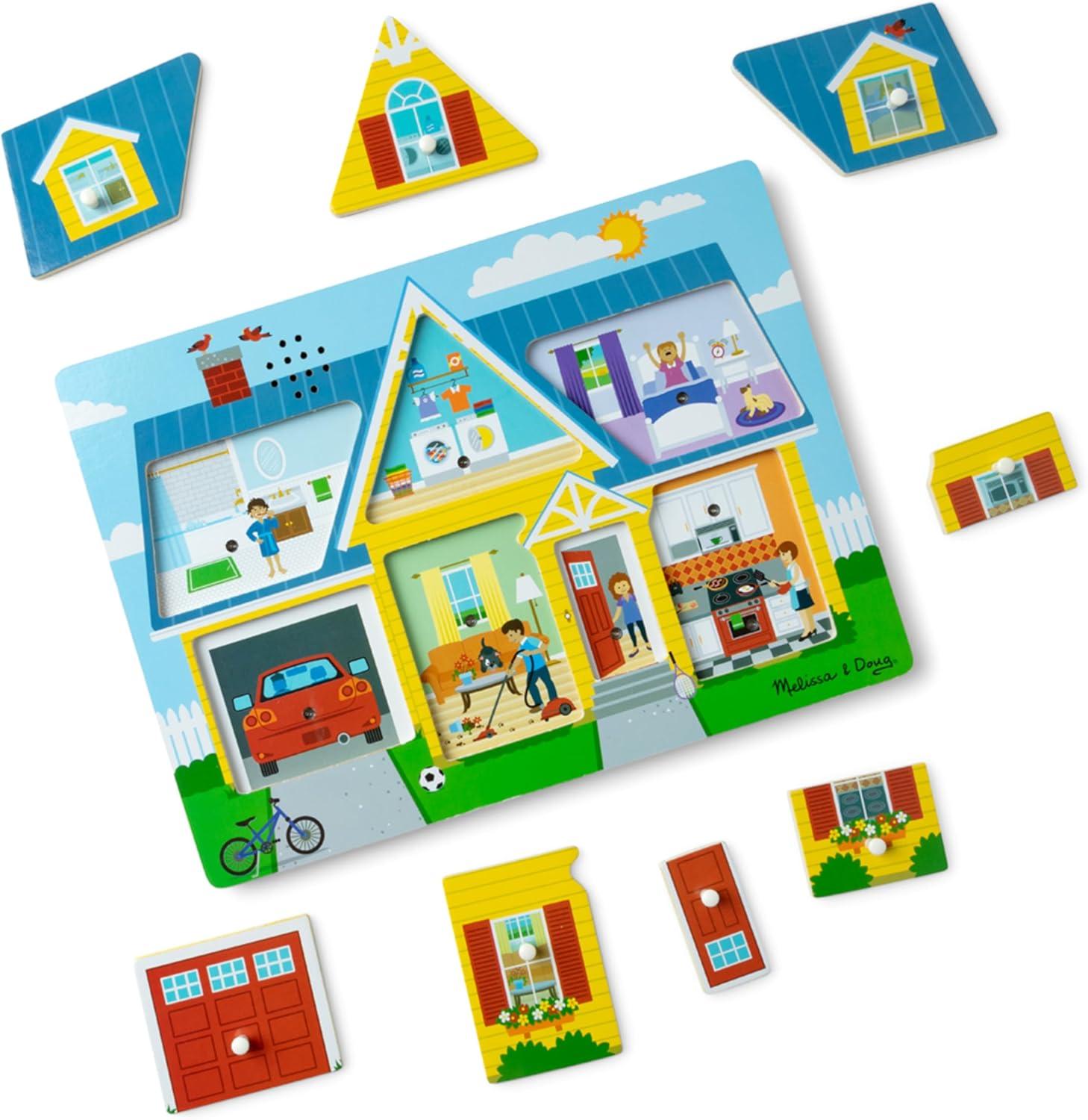 imageMelissa ampamp Doug Around The House Sound Puzzle  Wooden Peg Puzzle 8 pcs