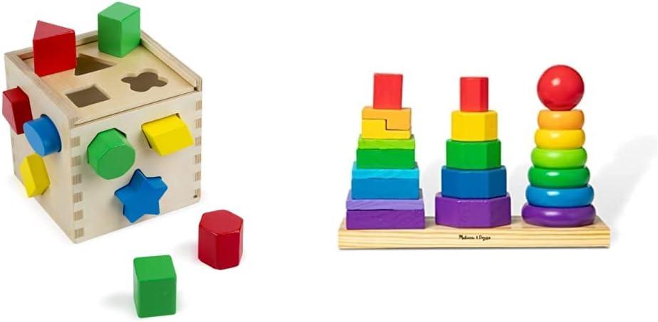 GREAT GIFT FOR KIDS 2 TO 4: This Geometric Stacker is an exceptional gift for kids ages 2 to 4 years. Add the Melissa & Doug Shape Sorting Cube to round out the hands-on, screen-free play experience.