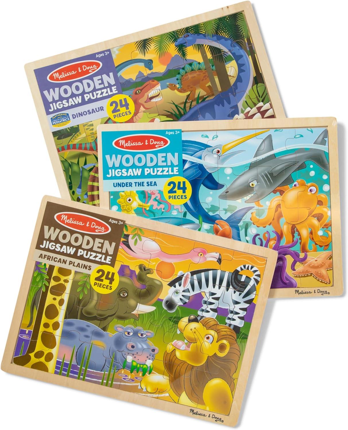 Melissa & Doug Under The Sea Ocean Animals Wooden Jigsaw Puzzle with Storage Tray (24 pcs)(African Plains Safari)