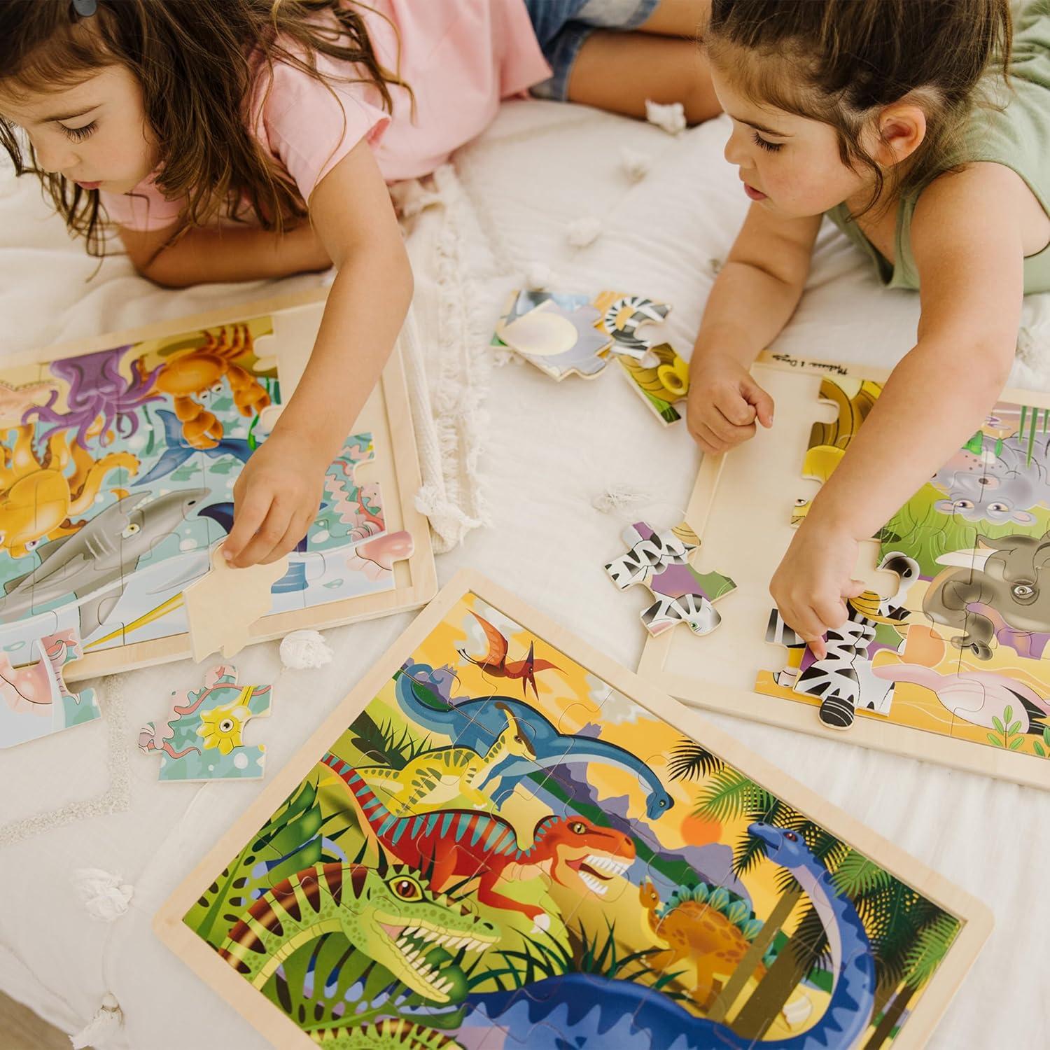 Melissa & Doug Under The Sea Ocean Animals Wooden Jigsaw Puzzle with Storage Tray (24 pcs)(Dinosaurs)
