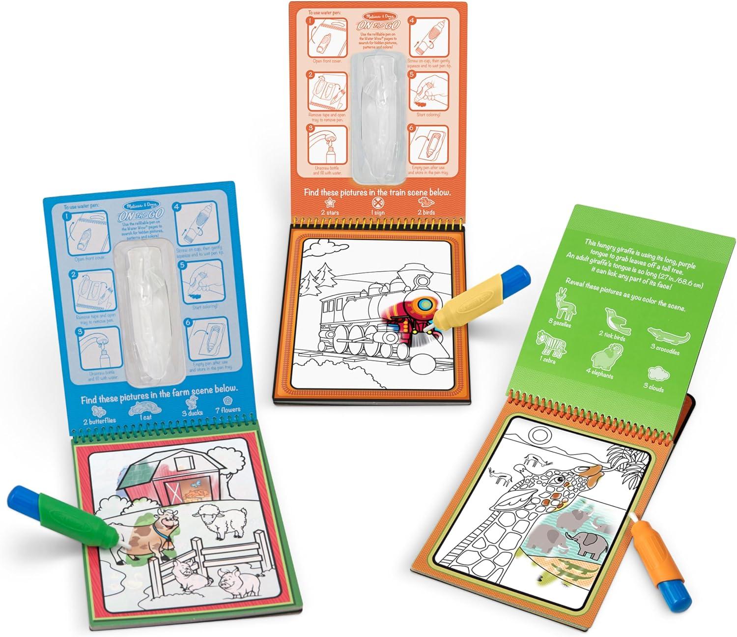 GIFT FOR AGES 3 TO 7: Our Reusable Color with Water Activity Pad 3-Pack makes an ideal gift for kids from ages 3 to 7 years. Add the Melissa & Doug On the Go Magicolor Coloring Pad for even more screen-free play and learning.